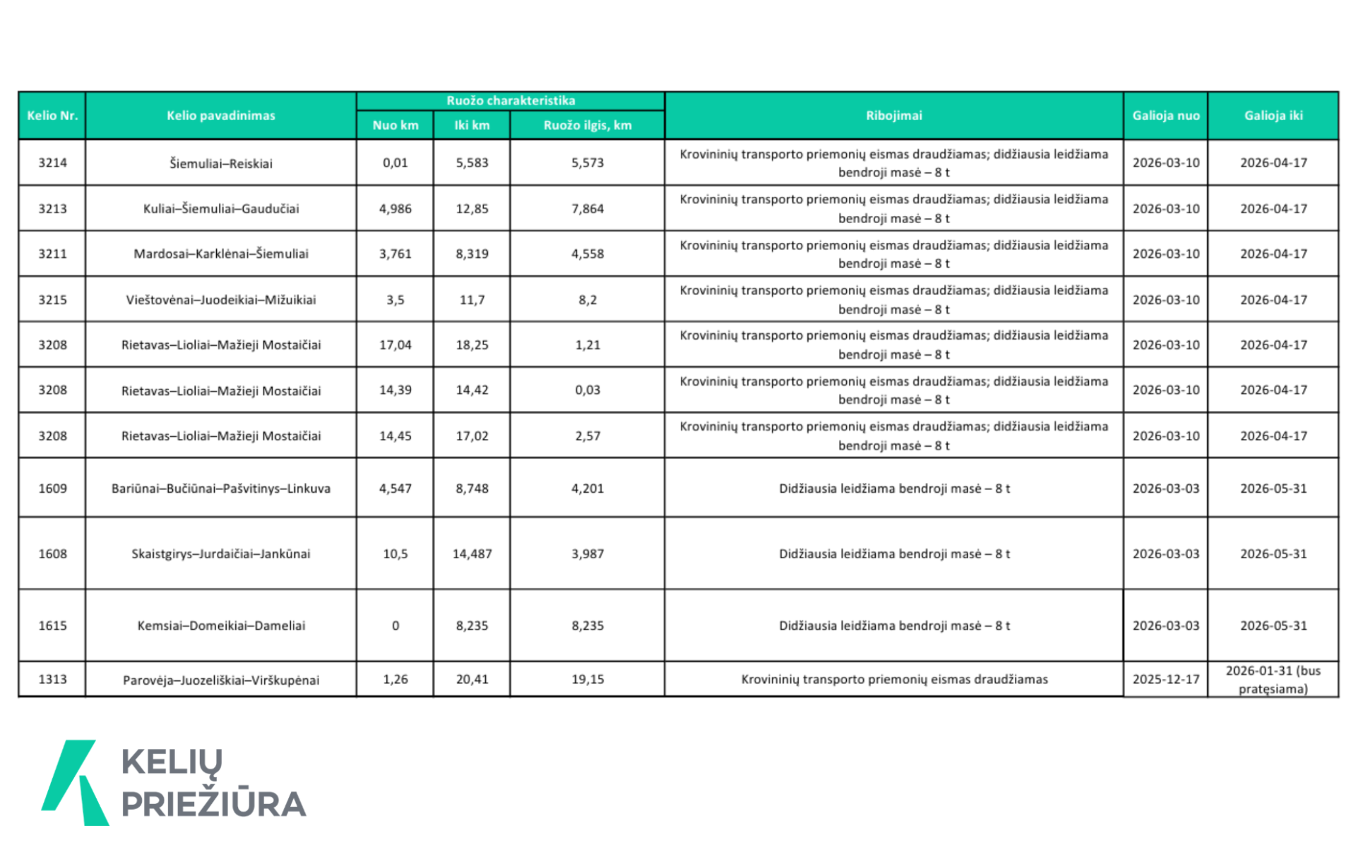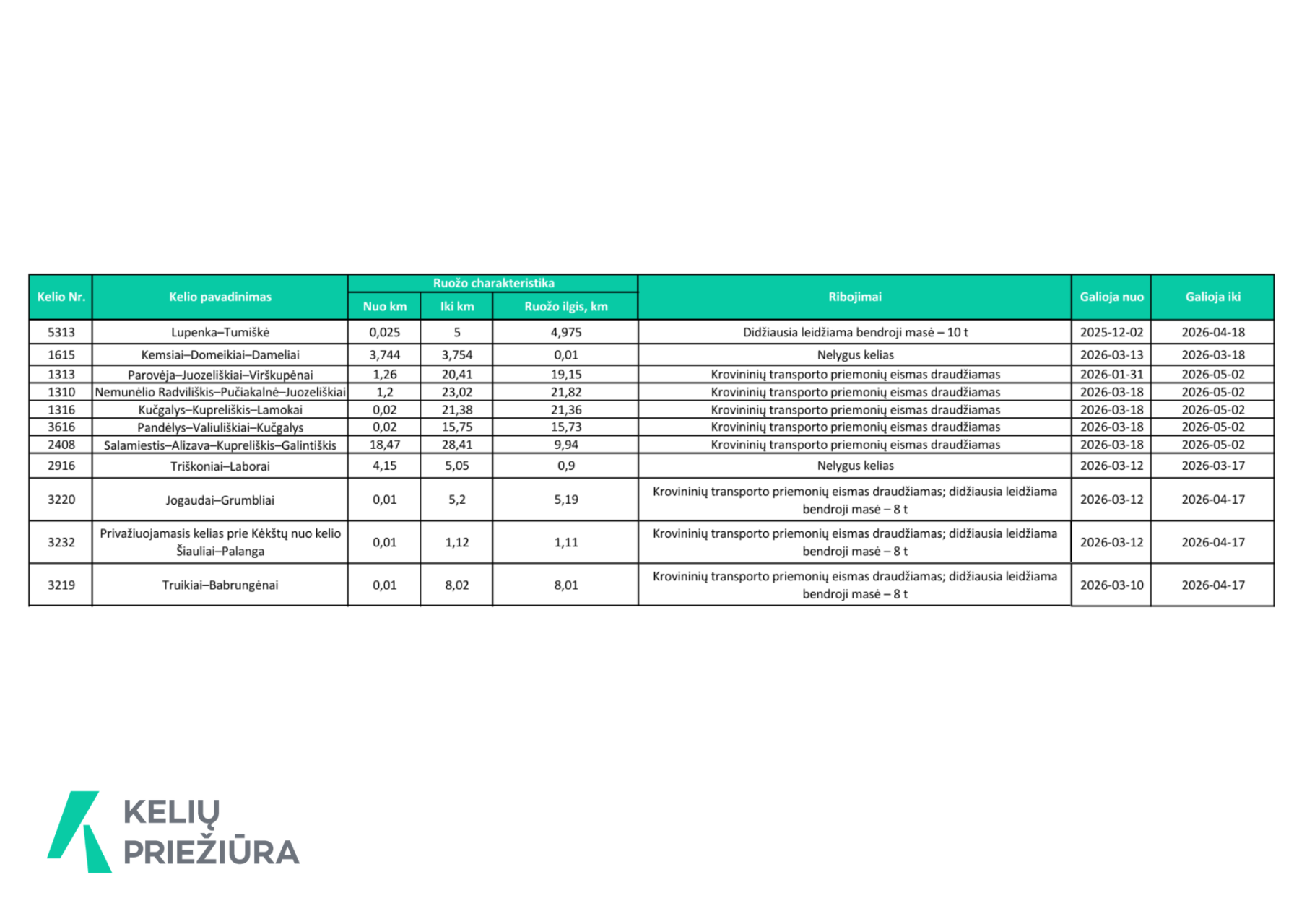 Suprantame, kad laikini krovininio transporto apribojimai gali sukelti nepatogumų gyventojams ir eismo dalyviams. Visų atsakingų institucijų tikslas – sudaryti sąlygas, kad po pavasario būtų užtikrinti saugiai pravažiuojami keliai, o ne ilgam laikui uždaryti ruožai.