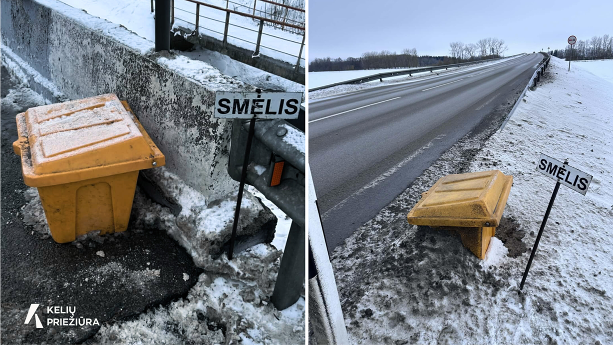 Smėlis prie pavojingų kelio atkarpų. AB „Kelių priežiūra“ nuotrauka.
