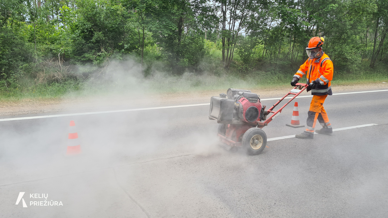 Plyšių sandarinimo darbai atliekami pasitraukus įšalui. AB „Kelių priežiūra“ nuotrauka.