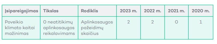 Tislas: nulinės ŠESD emisijos, atsakingas ir efektyvus energijos išteklių vartojimas, 0 neatitikimų aplinkosauginiams reikalavimams, atsakingas atliekų valdymas.
